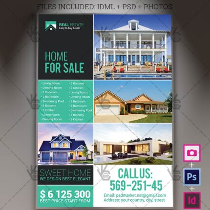 Simple Real Estate – A4 Flyer PSD Template + InDesign