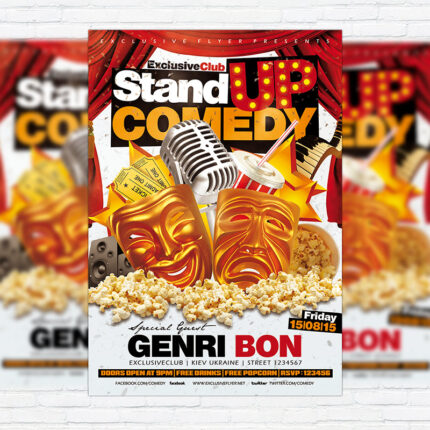Stand Up Comedy – Premium Flyer Template + Facebook Cover