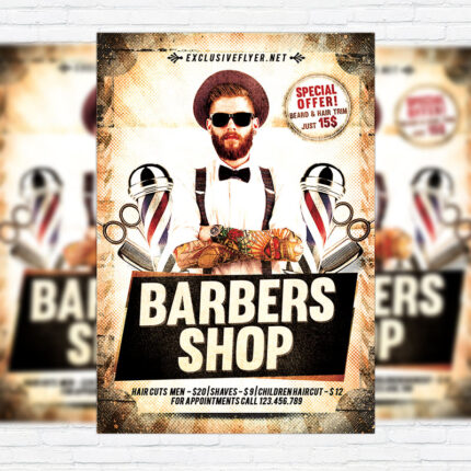 Barbers Shop – Premium Flyer Template + Facebook Cover