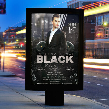 International Black Party – Premium Flyer Template + Facebook Cover