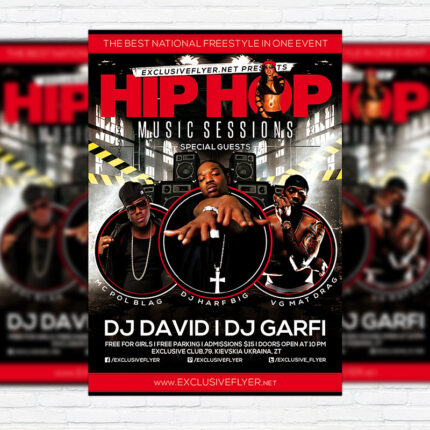 Hip Hop Music Sessions – Premium Flyer Template + Facebook Cover