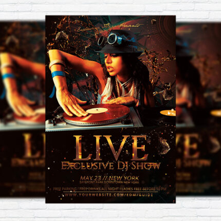 Exclusive DJ Live Show – Premium Flyer Template + Facebook Cover