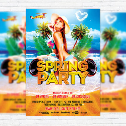 Spring Break Party – Premium Flyer Template + Facebook Cover