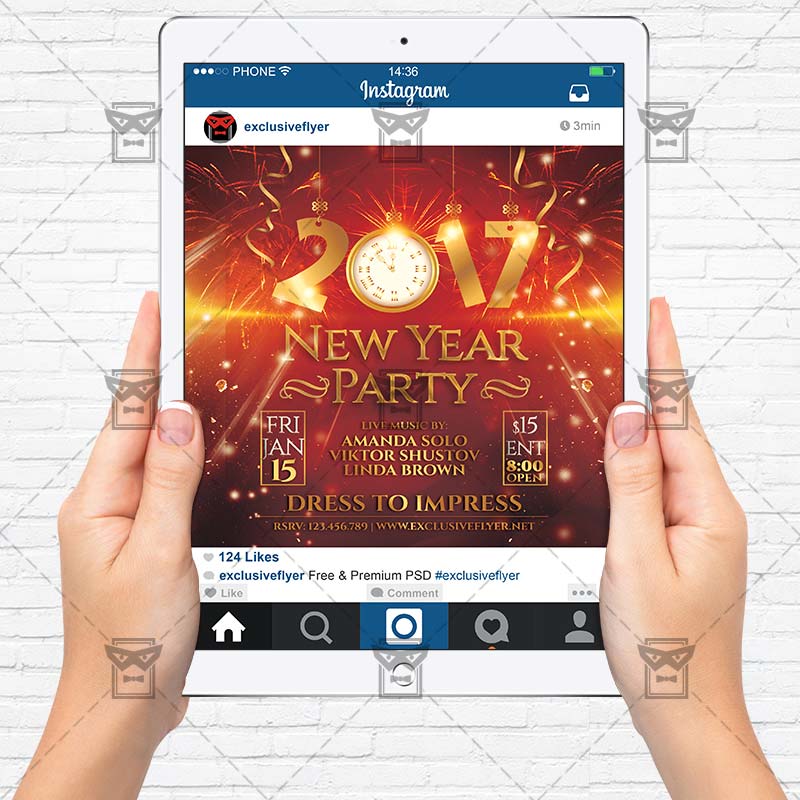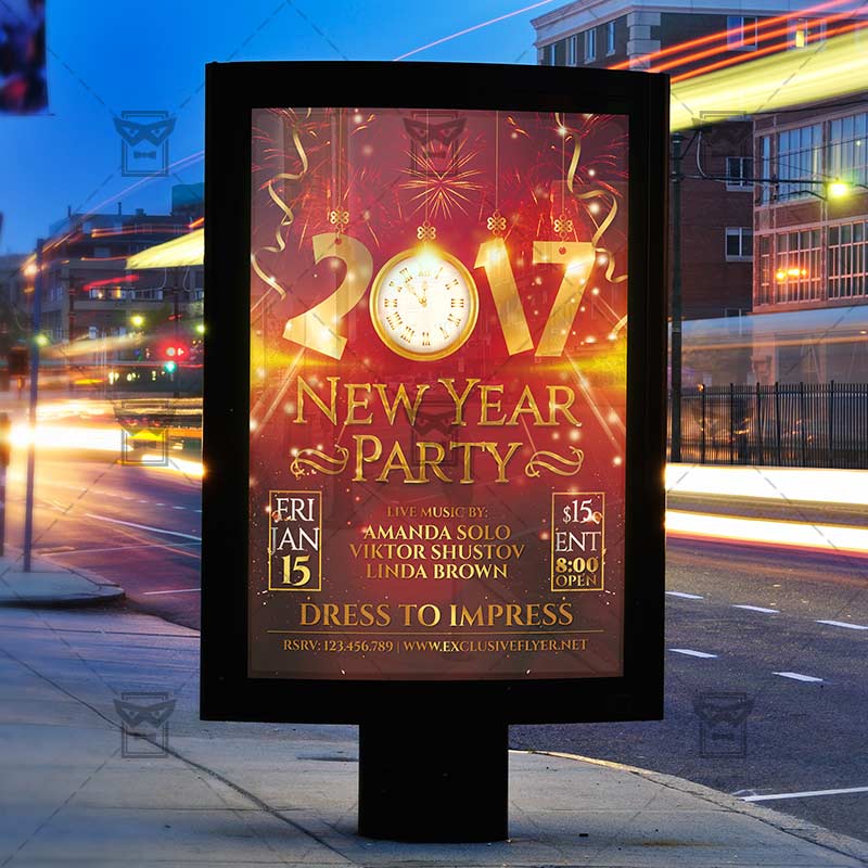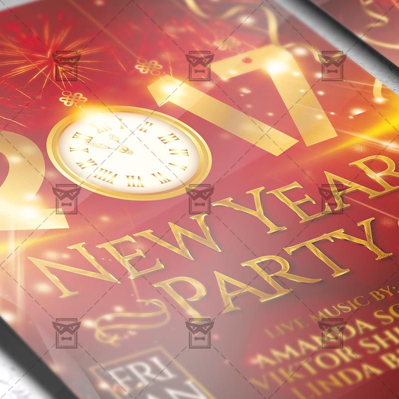 The 2017 New Year Party is the exclusive Photoshop PSD flyer template designed by ExclusiveFlyer to promote your 2017 New Year Party. This is a modern, stylish flyer and just be used for a 2017 New Year Night, New Year Eve Party etc. Dear customers! – you can also: Customize any flyers or Hire Us to create any unique product. Also, you can get unlimited access to all our templates. You can buy 1 month membership, 3 or 6 months membership or even 1 year membership plan and login on site, choose a design, click the button DOWNLOAD TEMPLATE and it’s yours. No hassle, no checkout! When you paid the template, you can find it in your personal account and of course you’ve got a message to your e-mail (maybe in spam) with link to download. Also, you can find all templates, which you buy, in your personal account! All of our flyers have a very good quality (300DPI). And it means that you just need to download one of them and make the necessary modifications such as replace the elements or choose the colors and start to invite your guests! You can order from us design of Banner Ad, Bi-Fold Brochure, Tri-Fold Brochure, Business Card, Logo, One-Sided Flyer, Two-sided Flyer or Postcard. All you need is to checkout and write us all information on our e-mail or skype. (order now). There are a lot of free flyer templates, free business card templates on our site! Also there are a lot of categories of flyers such as club flyers, seasonal flyers, sport flyers and also business flyers. You have a great choise on our site, so good luck! Don’t forget to follow our Facebook community, our page on Twitter, on Pinterest and on Tumblr and leave comments, cause we work for you! PSD is set up in 1275×1875 dimension (4” x 6” with 0,25” bleed). The PSD file is very well organised, with color coded groups and layers named appropriately. Remember, all stock images of models and other people used only for demonstration all charms of the flyer and don’t included in the download!