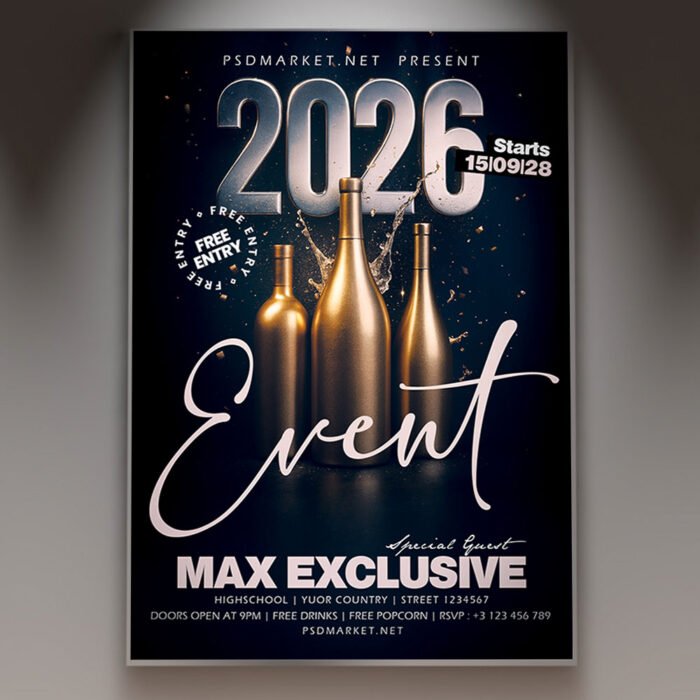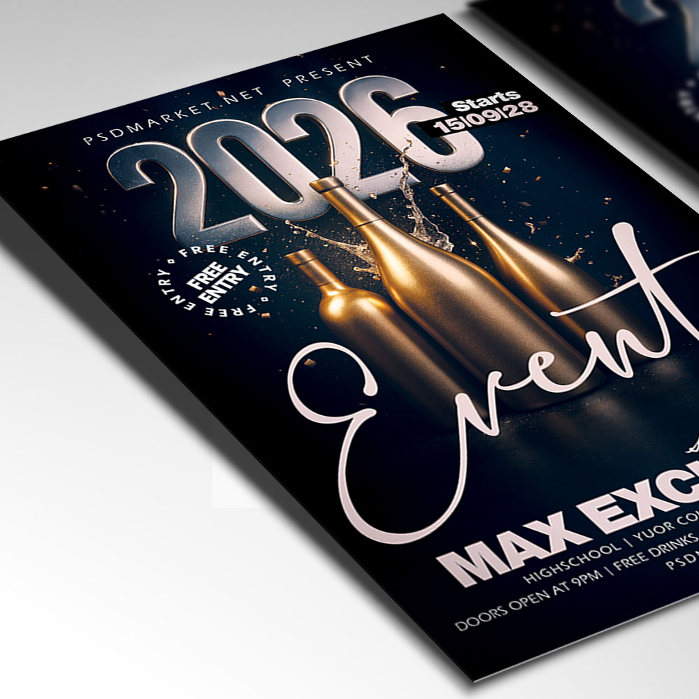 2026 Club Event Flyer PSD TemplateElectrify your nightlife promotion for the coming year! Our dynamic **2026 Club Event Flyer PSD Template** is the essential design tool for promoting any major club night, DJ residency launch, exclusive party, or high-energy event scheduled for the year 2026. This professional PSD template offers full customizability to ensure your event looks as current, intense, and sought-after as the hottest spot in town. If you’re looking to create an irresistible invitation that screams “**The Sound of 2026 Nightlife**,” “**The Ultimate Club Experience**,” and “**Dance Into the Future**,” this flyer template is engineered to draw a huge, energetic crowd ready to party. Expect to see striking visuals, often incorporating futuristic or high-energy elements like neon lights, laser beams, dynamic motion blurs, bold, aggressive club typography prominently featuring ‘2026’, and an electric, high-contrast color scheme (typically featuring neon colors, deep black, and sharp metallic accents) that perfectly captures the thrilling and sophisticated spirit of a major **2026 Club Event**. This template is all about setting an intense, high-energy, and memorable mood, making your venue the essential destination for nightlife in the coming year. The **2026 Club Event Flyer PSD Template** offers a highly adaptable and professional layout (as a PSD file), ensuring you can clearly communicate all the essential details of your event while perfectly maintaining its electrifying atmosphere. You can easily customize the text fields to include the specific date(s) and time(s) of your club night, the venue location, any special entry requirements (e.g., ticket purchase details, VIP table service, dress code), and information about featured entertainment (e.g., a **headlining DJ**, a full lineup, special guest performers), details on **drink specials**, **exclusive bottle service options**, or information about a special midnight surprise, all presented in a clear and appealing way. Add an enticing description of what attendees can expect, perhaps highlighting opportunities for a special **VIP viewing deck**, dedicated themed zones, or simply dancing and celebrating all night long. And of course, include clear contact information or prominent social media handles for further engagement and ticket sales. Being a PSD template, it offers exciting options to incorporate additional dynamic graphics like light beams, geometric patterns, or abstract backgrounds, or to adjust the impactful color palette to perfectly match your club’s brand aesthetic or the event’s specific vibe. This lets you create a truly unique and memorable promotional piece that looks as luxurious and exciting as your 2026 Club Event feels. Engineered for maximum reach, the **2026 Club Event Flyer PSD Template** is designed to be both print-ready for stunning physical distribution and seamlessly optimized for digital sharing. This ensures your exciting invitation reaches a wide and enthusiastic audience. Create eye-catching physical flyers to distribute at high-traffic areas, and effortlessly share the flyer digitally through various social media channels with engaging captions that highlight the music and energy, email announcements that build anticipation, and online event listings that attract revelers and guests. This dual functionality helps to maximize visibility and create significant buzz around your 2026 Club Event. By utilizing this distinctive and attention-grabbing flyer template, you’re not just announcing a party; you’re creating an invitation that broadcasts pure, thrilling celebration and promises an experience filled with great music, high energy, and unforgettable memories, making your “**2026 Club Event**” the essential destination for nightlife. Grab this template today and secure your spot as the hottest club event of 2026! — Features of the 2026 Club Event Flyer PSD Template