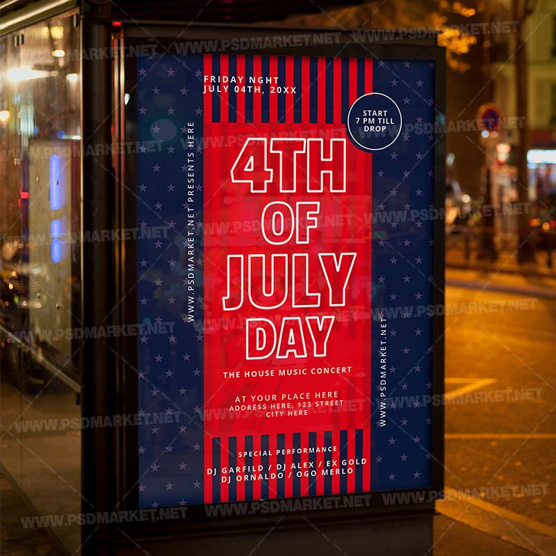 4 th of July Day Template Flyer PSD is a simply modern flyer design by PSDmarket Team to be used with Photoshop CS3 and higher. Save your time and use it for business or for your clients! This can be use for 4 th of July Event, 4 th of July 2022, 4 th of July Picnic, 4 th of July 2024, Memorial Day Club Party, 4 th of July Club, 4 th of July Celebration, Happy 4 th of July, 4 th of July Weekend, 4 th of July Party, 4 th of July Day 2023, 4 th of July BBQ, Independence Day and others.