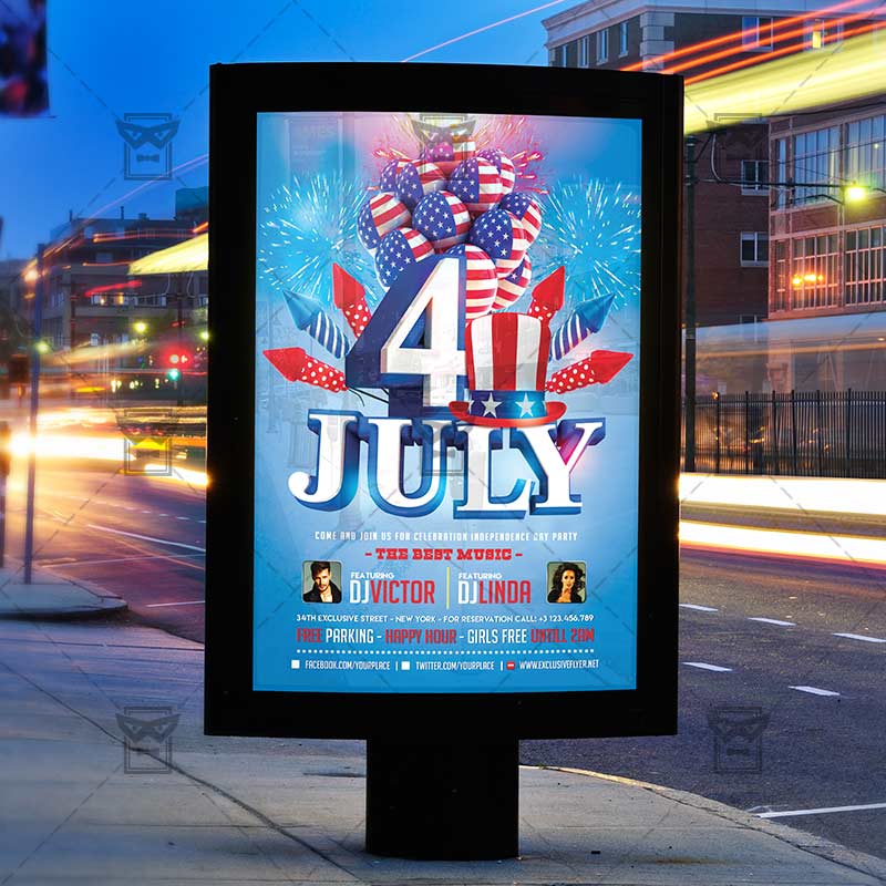4th of July Celebration Template an exclusive PSD flyer template for Adobe Photoshop designed by our best graphic designers to facilitate your task in promoting your business. With our readymade Club flyer in psd format you can invite you customers and guest to your event or to the best 4th of July Rooftop Party, Independence Day Celebration, 4th July Party, USA Independence Day in their lives.
