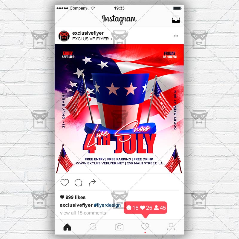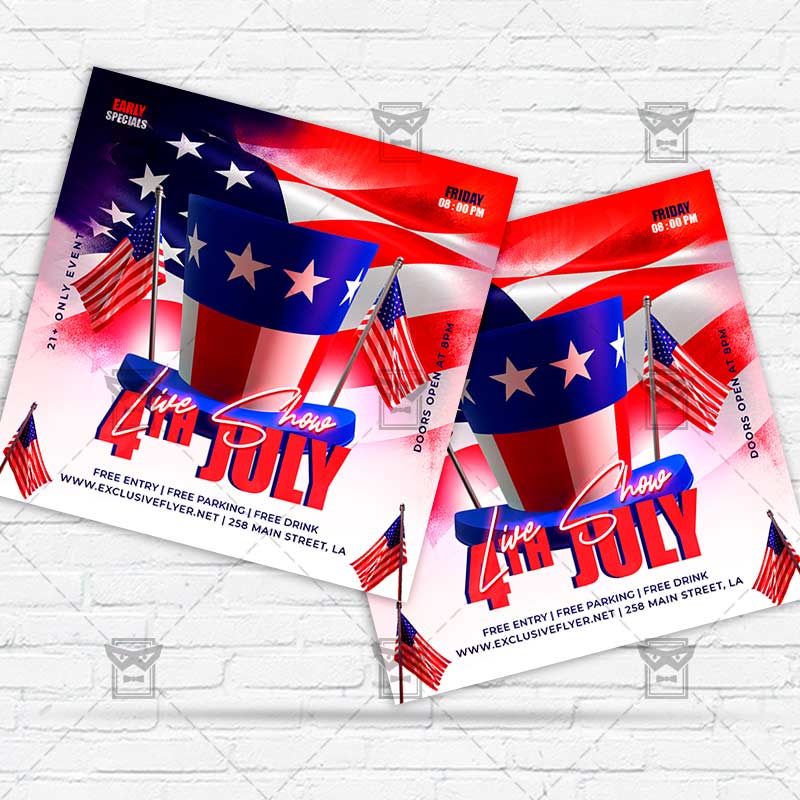4th of July Template an exclusive PSD flyer template for Adobe Photoshop designed by our best graphic designers to facilitate your task in promoting your business. With our readymade Club flyer in psd format you can invite you customers and guest to your event or to the best 4th of July Rooftop Party, USA Independence Day Takeover, USA 4th of July Night, Independence Day Barbeque or 4th of July BBQ in their lives.