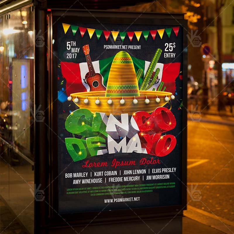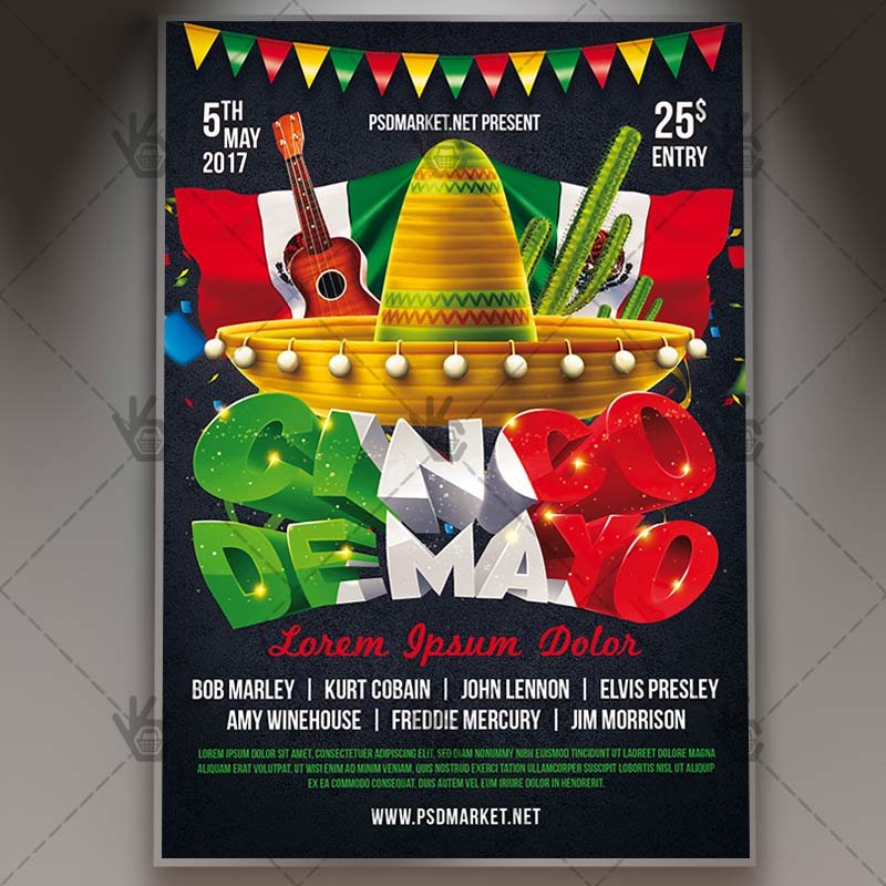 5 de Mayo Fiesta is a simply modern flyer design by PSDmarket Team to be used with Photoshop CS3 and higher. Save your time and use it for business or for your clients! This can be use for Cinco De Mayo Night, Cinco De Mayo Carnival, 2017 Cinco De Mayo, Cinco De Mayo Party, Cinco De Mayo Fiesta, Cinco De Mayo Day or Cinco De Mayo Event and others.