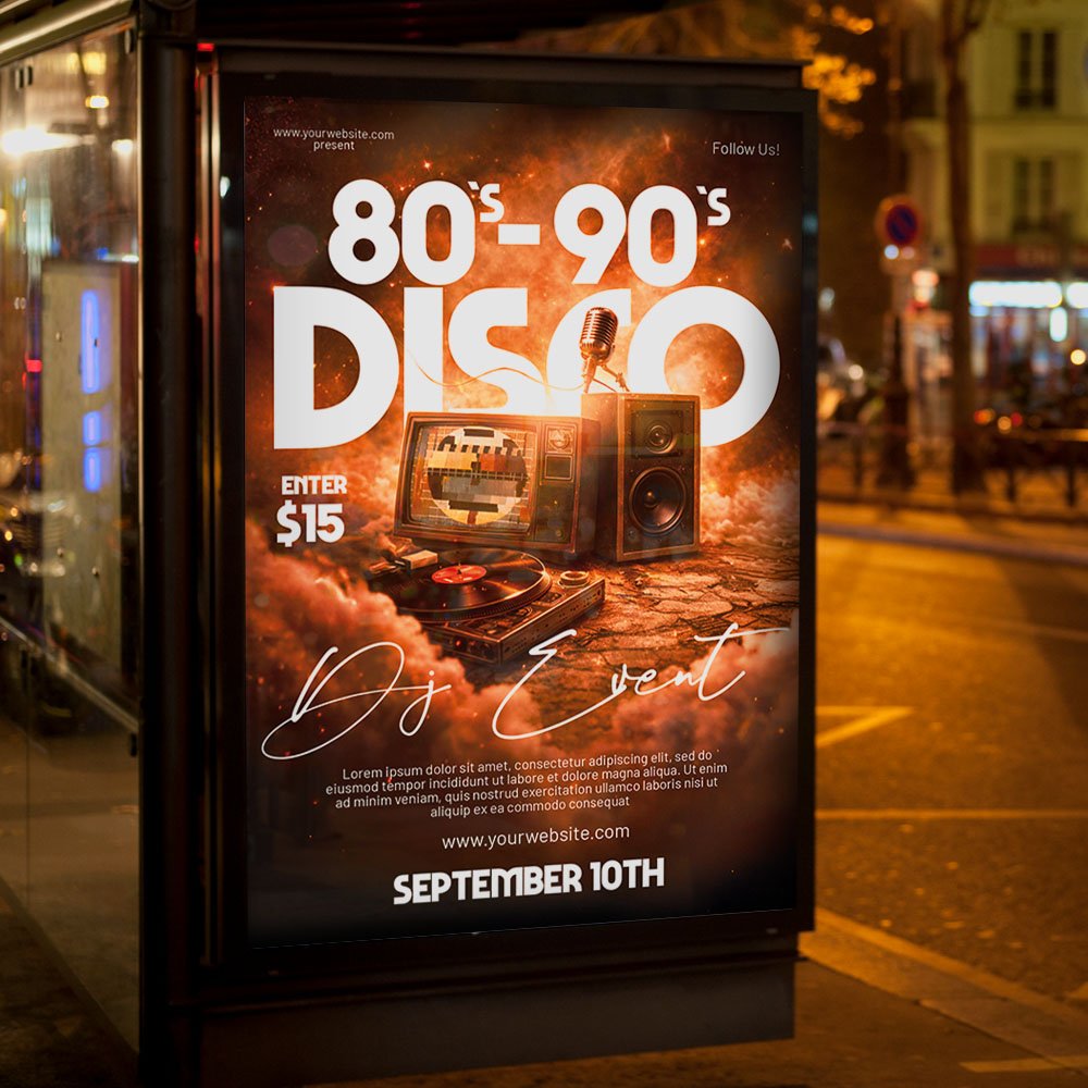 80 90 Party Disco Flyer PSD TemplateDouble the nostalgia and triple the fun! Our **80 90 Party Disco Flyer PSD Template** is the definitive design choice for clubs, bars, and event organizers looking to host a massive throwback celebration in 2026. This professional Photoshop template bridges the gap between two of the most iconic decades in music history, blending the neon energy of the 80s with the bold, urban vibes of the 90s. If you want to create an invitation that screams **”The Ultimate Decade Mashup,” “Back to the Classics,”** or **”80s vs 90s: The Final Showdown,”** this template is your secret weapon. Featuring high-definition 3D disco balls, vibrant geometric patterns, retro sneakers, and cassette tapes, this design captures the essence of a true **80 90 Party**. The electric color palette of neon cyan, hot magenta, and deep violet ensures your event stands out with an unmistakable retro glow. The **80 90 Party Disco Flyer PSD Template** is engineered for professional results with minimal effort. As a fully layered and organized PSD file, it offers complete creative control over every design element. You can easily customize the text layers to feature your venue’s name, the date, time, and ticket pricing. Use the smart object layers to highlight specific event attractions such as **”Best 80s/90s Costume” prizes, live retro DJ sets, vintage arcade games,** or **exclusive throwback cocktail menus**. Whether you are planning a large-scale nightclub event or a curated boutique lounge night, the template’s high-resolution structure ensures that your shadows, textures, and lighting effects remain crisp and professional. This **80 90 Party** flyer is designed to look as good in a high-gloss print as it does on a smartphone screen. Optimized for a 2026 multi-channel marketing strategy, this template is 100% print-ready and perfectly scaled for social media dominance. You can produce stunning, high-contrast physical posters while simultaneously creating engaging posts for Instagram, Facebook, and TikTok. This comprehensive approach ensures you reach nostalgic fans of all ages, maximizing your event’s visibility and attendance. By choosing this vibrant and high-impact flyer template, you are promising your guests a high-energy trip down memory lane. Make your **”80 90 Party Disco”** the most talked-about retro night of the year. Download this premium template today and start the countdown to a legendary celebration! — Features of the 80 90 Party Disco Flyer PSD Template