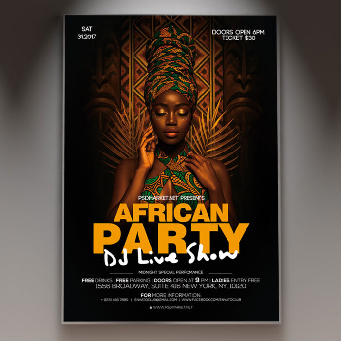 Get Your African Party Flyer Template Today!Start promoting your next sensational “African Party” now with our unique and vibrant flyer template. Download it today and get ready to ignite the dance floor! |