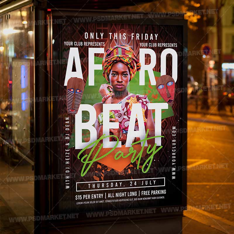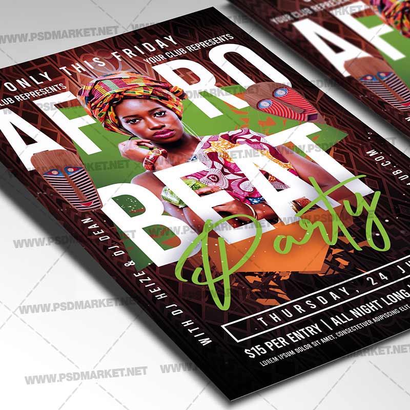 Afro Beat Party Card Printable Template Flyer PSD is a simply modern flyer design by PSDmarket Team to be used with Adobe Photoshop CS3 and higher. Save your time and use it for business or for your clients! This can be use for Afro Beat Party, Afro Beat Friday, Afro Beat, Afro Party, Afro Night, Afro Music Party, African Party, Afro Caribbean Night, Afro House Party Night and others.