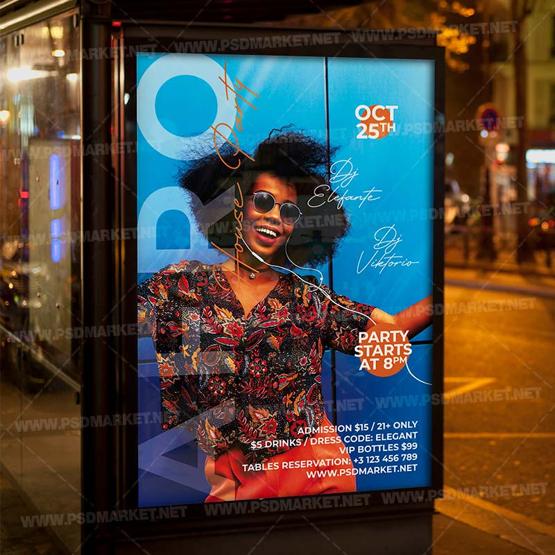 Afro House Party Flyer PSD Template for Adobe Photoshop