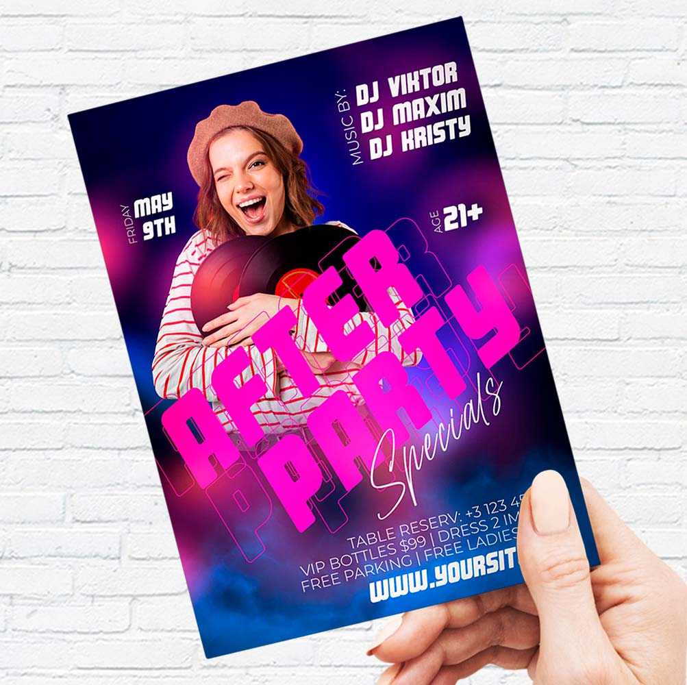 After Party Specials A5 Flyer PSD Template for Adobe Photoshop