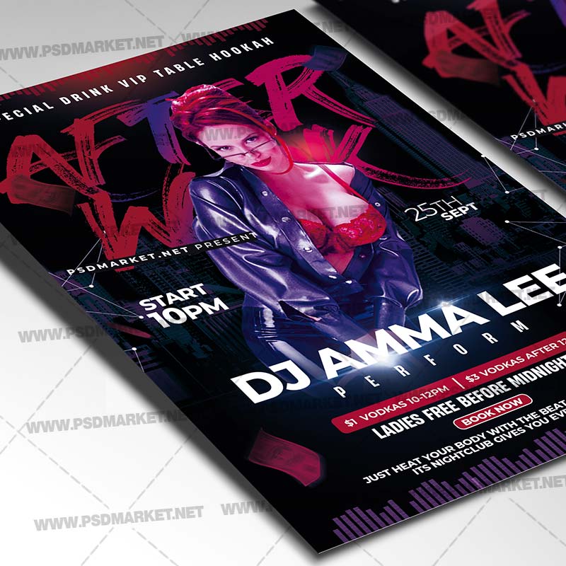 After Work Club PSD Template Flyer is a simply modern flyer design by PSDmarket Team to be used with Adobe Photoshop CS3 and higher. Save your time and use it for business or for your clients! This can be use for After Work Club, Club Party Show, Dj Show, Special Dj Party, Special Guest Dj, Special Guest, Night Party, Friday Party, Music Club, Party Night, Party Friday, World Party Day, Dj Sound, Dj Club Event, Dj Party, Dj Night, Black Party, Club Party, Online Party, Online Stream Party, Live Party, House Party, Home Night, Party Night, Rave Club Party, Rave Dj, Dj Battle and others.
