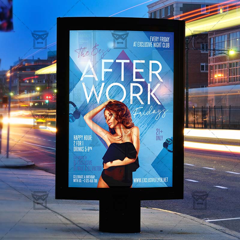 After Work Fridays Template an exclusive PSD flyer template for Adobe Photoshop designed by our best graphic designers to facilitate your task in promoting your business. With our readymade Club flyer in psd format you can invite you customers and guest to your event or to the best After Work Party, After Work Night, After Work Edition, Club Party, Dj Night, Antivirus Party, Anti Virus Night, Club Music Night or Dj Battle Night in their lives.