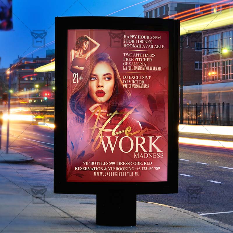 After Work Madness Template an exclusive PSD flyer template for Adobe Photoshop designed by our best graphic designers to facilitate your task in promoting your business. With our readymade Club flyer in psd format you can invite you customers and guest to your event or to the best After Work Party, After Work Night, After Work Edition, Club Party, Dj Night, Antivirus Party, Anti Virus Night, Club Music Night or Dj Battle Night in their lives.