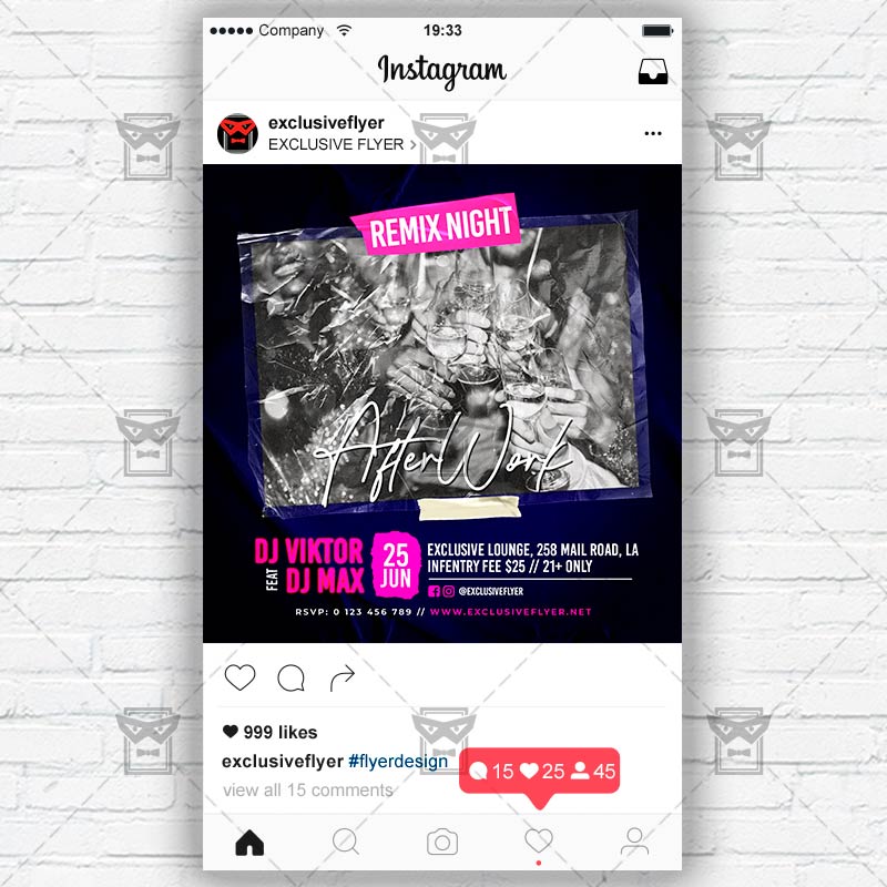 Afterwork Party Template an exclusive PSD flyer template for Adobe Photoshop designed by our best graphic designers to facilitate your task in promoting your business. With our readymade Club flyer in psd format you can invite you customers and guest to your event or to the best Party Club, After Work Night, Party Online, Live Show Night, Online Show. Online Dj Battle, Online Party On in their lives.