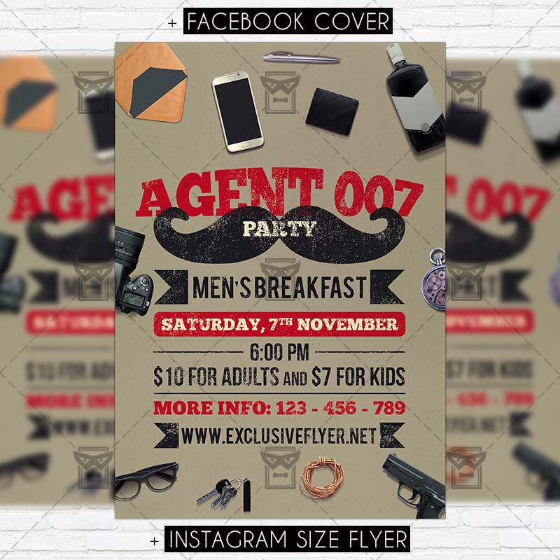 The Agent 077 Party is the exclusive Photoshop PSD flyer template designed by ExclusiveFlyer to promote your Agent 077 Party. This is a modern, stylish flyer and just be used for a Secret Agents Night, James Bond Party, 007 Party, Secret Night etc. Dear customers! – you can also: Customize any flyers or Hire Us to create any unique product. Also, you can get unlimited access to all our templates. You can buy 1 month membership, 3 or 6 months membership or even 1 year membership plan and login on site, choose a design, click the button DOWNLOAD TEMPLATE and it’s yours. No hassle, no checkout! When you paid the template, you can find it in your personal account and of course you’ve got a message to your e-mail (maybe in spam) with link to download. Also, you can find all templates, which you buy, in your personal account! All of our flyers have a very good quality (300DPI). And it means that you just need to download one of them and make the necessary modifications such as replace the elements or choose the colors and start to invite your guests! You can order from us design of Banner Ad, Bi-Fold Brochure, Tri-Fold Brochure, Business Card, Logo, One-Sided Flyer, Two-sided Flyer or Postcard. All you need is to checkout and write us all information on our e-mail or skype. (order now). There are a lot of free flyer templates, free business card templates on our site! Also there are a lot of categories of flyers such as club flyers, seasonal flyers, sport flyers and also business flyers. You have a great choise on our site, so good luck! Don’t forget to follow our Facebook community, our page on Twitter, on Pinterest and on Tumblr and leave comments, cause we work for you! PSD is set up in 1275×1875 dimension (4” x 6” with 0,25” bleed). The PSD file is very well organised, with color coded groups and layers named appropriately. Remember, all stock images of models and other people used only for demonstration all charms of the flyer and don’t included in the download!