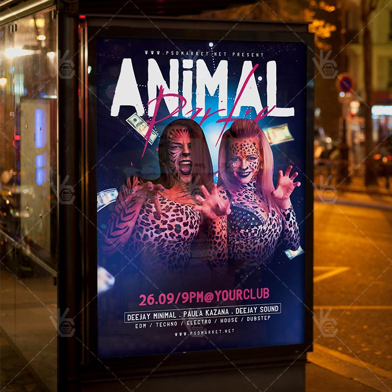 Animal Party Flyer is a simply modern flyer design by PSDmarket Team to be used with Photoshop CS3 and higher. Save your time and use it for business or for your clients! This can be use for Animal Party, Tiger Party Night, Tiger Party, Tiger Party Event, Wild Party, Wild Night, Tiger Party Night, Animal Night, Animal Fiesta, Safari Party, Safari Night and others.