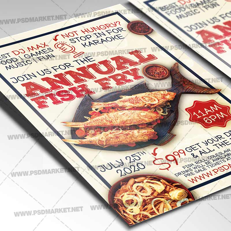 Annual Fish Fry Flyer is a simply modern flyer design by PSDmarket Team to be used with Photoshop CS3 and higher. Save your time and use it for business or for your clients! This can be use for Delivery Service, Pizza Delivery, Italian Food Delivery, Food Delivery, Fish Fry Fridays, Fast Food Track, Food Track, Fish Fry Event, Products Delivery and others.