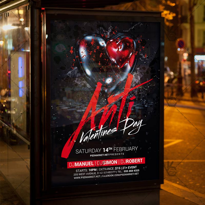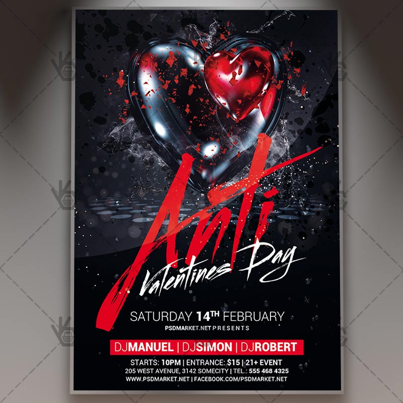 Anti Valentines Day is a simply modern flyer design by PSDmarket Team to be used with Photoshop CS3 and higher. Save your time and use it for business or for your clients! This can be use by graphic designers, event agency, lovers and others.