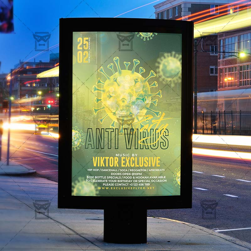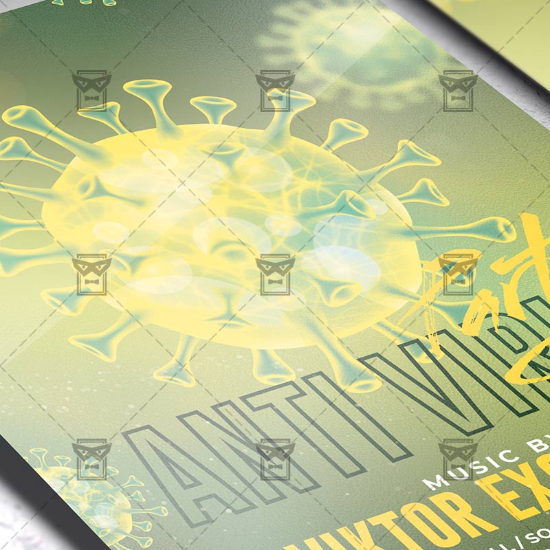 Anti Virus Party Template an exclusive PSD flyer template for Adobe Photoshop designed by our best graphic designers to facilitate your task in promoting your business. With our readymade Club flyer in psd format you can invite you customers and guest to your event or to the best Anti Virus Online Party, Online Party, Online Event, Instagram Live Party or Facebook Party Online in their lives.