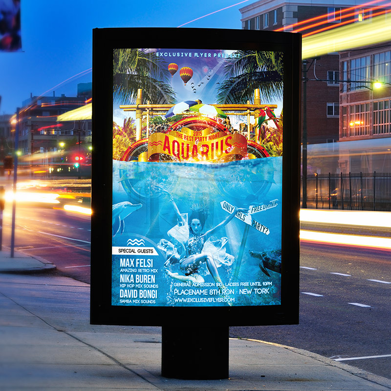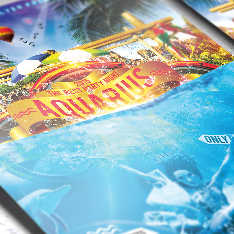 The Aquarius Party Night is the exclusive Photoshop PSD flyer template designed by ExclusiveFlyer to promote your Aquarius Party Night. This is a modern, stylish, green flyer and just be used for a Summer Party or maybe Spring Night. Dear customers! – you can also: Customize any flyers or Hire Us to create any unique product. Also, you can get unlimited access to all our templates. You can buy 1 month membership, 3 or 6 months membership or even 1 year membership plan and login on site, choose a design, click the button DOWNLOAD TEMPLATE and it’s yours. No hassle, no checkout! When you paid the template, you can find it in your personal account and of course you’ve got a message to your e-mail (maybe in spam) with link to download. Also, you can find all templates, which you buy, in your personal account! All of our flyers have a very good quality (300DPI). And it means that you just need to download one of them and make the necessary modifications such as replace the elements or choose the colors and start to invite your guests! You can order from us design of Banner Ad, Bi-Fold Brochure, Tri-Fold Brochure, Business Card, Logo, One-Sided Flyer, Two-sided Flyer or Postcard. All you need is to checkout and write us all information on our e-mail or skype. (order now). There are a lot of free flyer templates, free business card templates on our site! Also there are a lot of categories of flyers such as club flyers, seasonal flyers, sport flyers and also business flyers. You have a great choise on our site, so good luck! Don’t forget to follow our Facebook community, our page on Twitter, on Pinterest and on Tumblr and leave comments, cause we work for you! PSD is set up in 1275×1875 dimension (4″×6″ with 0,25″ bleed). The PSD file is very well organised, with color coded groups and layers named appropriately. Remember, all stock images of models and other people used only for demonstration all charms of the flyer and don’t included in the download!