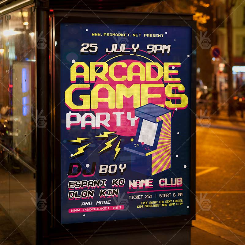 Arcade Game Flyer is a simply modern flyer design by PSDmarket Team to be used with Photoshop CS3 and higher. Save your time and use it for business or for your clients! This can be use for Arcade Game, Arcade Games Night, Arcade Games Party, Arcade Games Day, Arcade Games Fest, Arcade Games Festival, Arcade Games Party Night, Arcade Games Event and others.