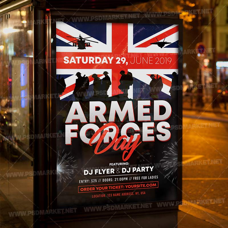 Armed Forces Day Flyer is a simply modern flyer design by PSDmarket Team to be used with Photoshop CS3 and higher. Save your time and use it for business or for your clients! This can be use for Armed Forces Day, Memorial Party, Memorial Day 2019, Memorial Day Remembrance, Memorial Day Specials, Memorial Day Open, Memorial Day Party, Memorial Day BBQ, Memorial, Memorial Day, Memorial Day Patriotic, Patriot Day, Honor Day, Veterans Day, Memorial Party, Memorial Day Event and others.