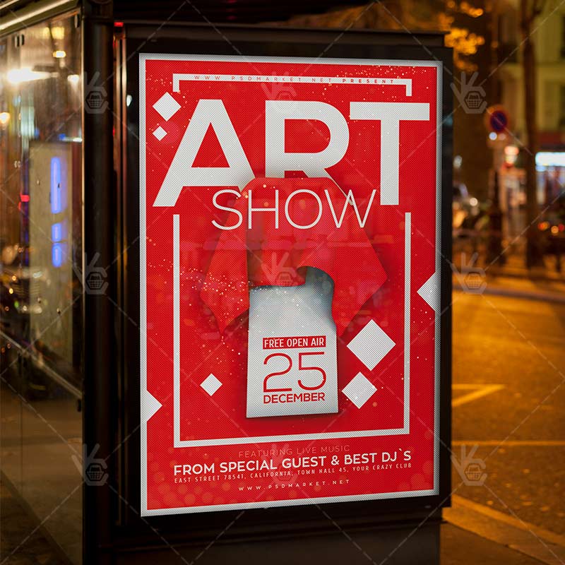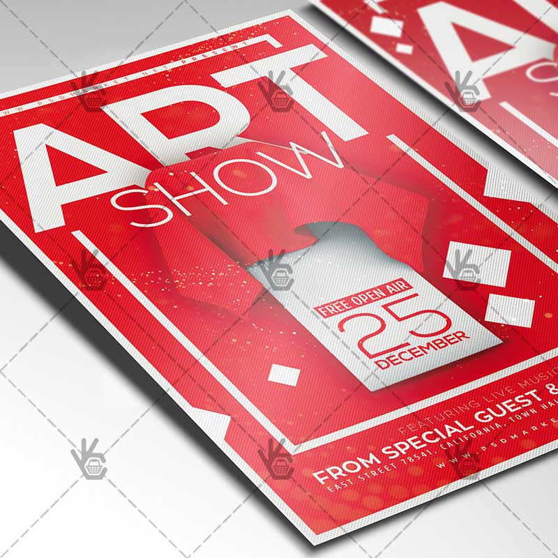 Art Show is a simply modern flyer design by PSDmarket Team to be used with Photoshop CS3 and higher. Save your time and use it for business or for your clients! This can be use for Art Day, Art Show Night, Art Celebration, Art Show Party, Art Presentation or Museum Party and others.