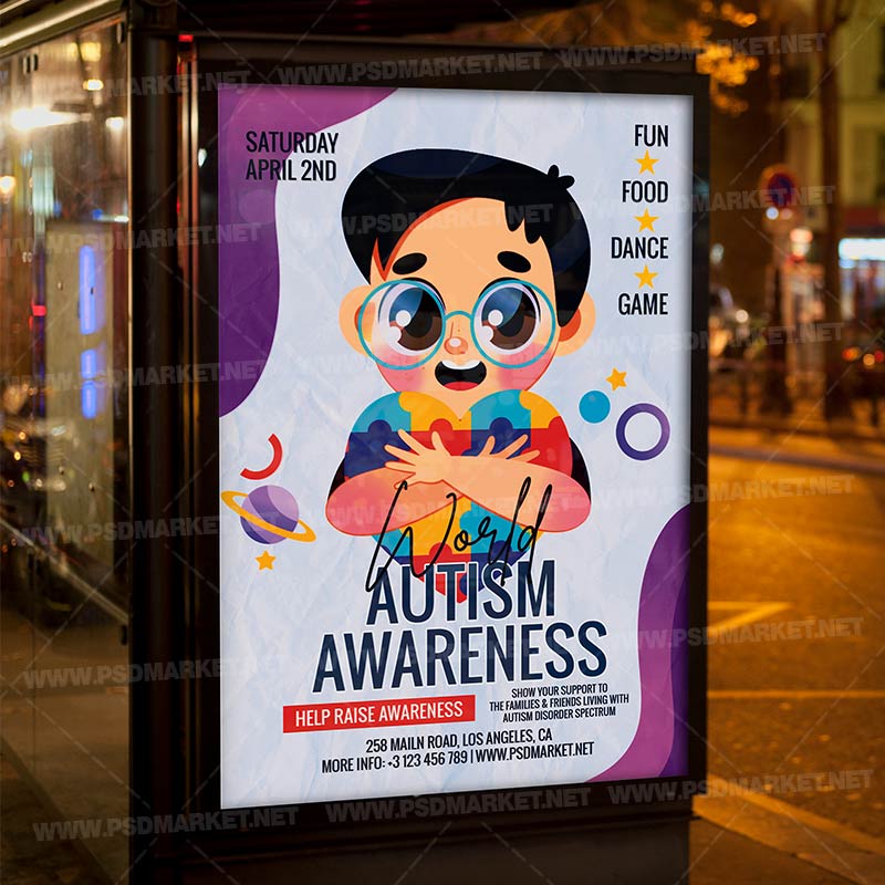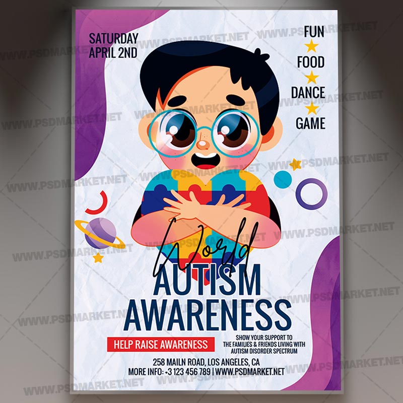 Autism Awareness Card Printable Template Flyer PSD is a simply modern flyer design by PSDmarket Team to be used with Photoshop CS3 and higher. Save your time and use it for business or for your clients! This can be use for Autism Awareness, Autism Celebration, Autism Event, Autism Day, Autism 2024 and others.