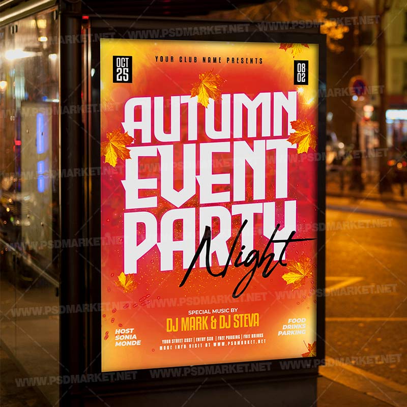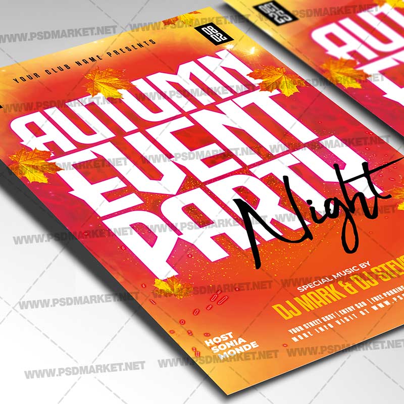 Autumn Event Party PSD Template Flyer is a simply modern flyer design by PSDmarket Team to be used with Photoshop CS3 and higher. Save your time and use it for business or for your clients! This can be use for Autumn Event Party, Autumn Party, Autumn Sale Event, Autumn Event Party, Autumn Day, Autumn Night Event, Autumn Party Event, Autumn Event, Autumn Party, Autumn Affair, Autumn Party Event, Autumn Party, Autumn Party Night, Autumn Fest, Autumn Partyt Event, Autumn Night Event, Fall Party, Fall Night, Autumn Festival, Autumn Mondays, Autumn Sound, Electro Day, Electro Fest, Electro Dance Night, Club Party, Autumn Open Air Night, Autumn Festival Party Night, Autumn Dj Fest, Fall Night Party, Fall Event, Autumn Celebration, Autumn Party or DJ Festival and others.