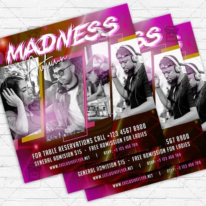 Autumn Madness Template an exclusive PSD flyer template for Adobe Photoshop designed by our best graphic designers to facilitate your task in promoting your business. With our readymade Club flyer in psd format you can invite you customers and guest to your event or to the best Autumn Night, Autumn Chill, Autumn Vibes, Autumn Club Party, Autumn Jam, Autumn Madness Night in their lives.