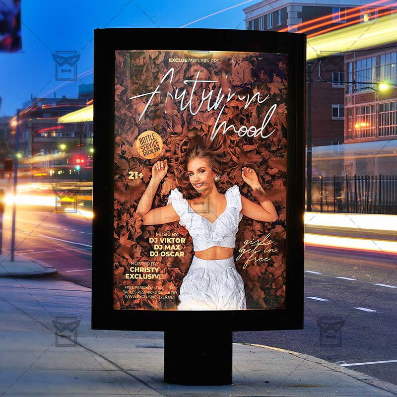Autumn Mood an exclusive PSD flyer template for Adobe Photoshop designed by our best graphic designers to facilitate your task in promoting your business. With our readymade Autumn flyer in psd format you can invite you customers and guest to your event or to the best Autumn Fair, Autumn Party, Autumn Club Night. Autumn Fever or Autumn Bash in their lives.