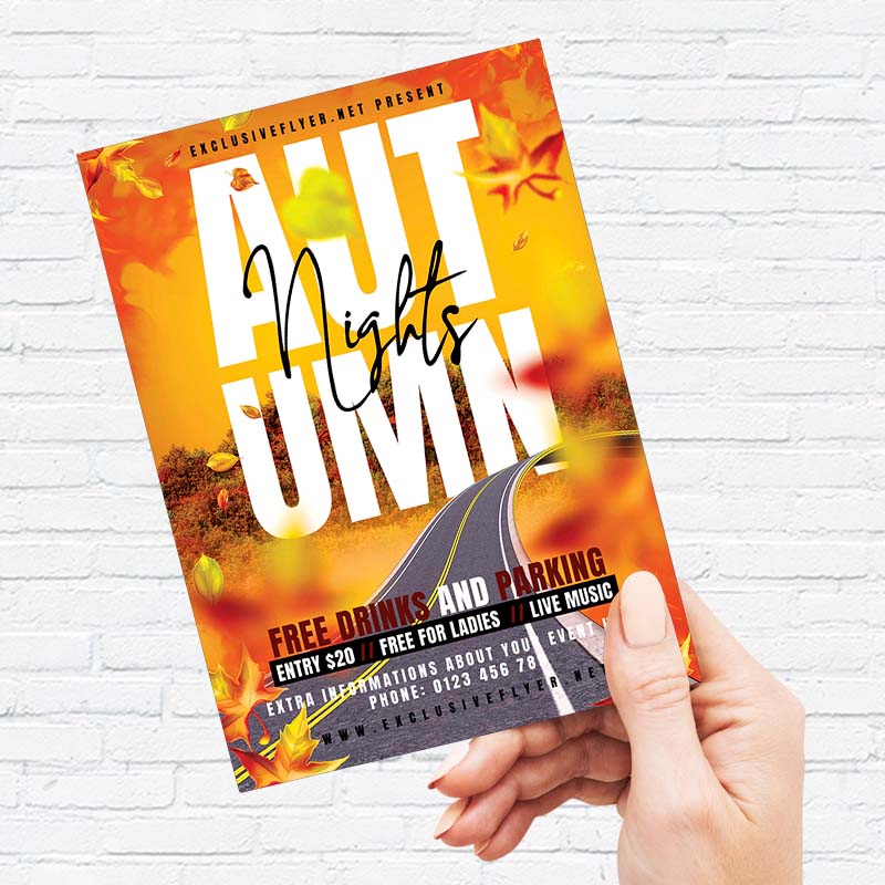 Autumn Nights Template an exclusive PSD flyer template for Adobe Photoshop designed by our best graphic designers to facilitate your task in promoting your business. This psd poster/flyer is the best choice for Autumn Night, Autumn Chill, Autumn Vibes, Autumn Club Party, Autumn Jam, Autumn Madness Night. With our readymade Autumn Nights PSD Template flyer in psd format you can invite you customers and guest to your event with a minimum of efforts and time.