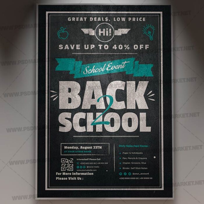 Back To School Event, Back 2 School Sale, Back 2 School Sale 2022 PSD Template Flyer is a simply modern flyer design by PSDmarket Team to be used with Photoshop CS3 and higher. Save your time and use it for business or for your clients! This can be use for Back To School Sale Event, Back To School 2022, School Day Party Night, School Day Event, School Back Love, School Back Event, School Day Party, School Party Day, School Sale, School Day, School Again, School Again Party, Biggest School Party, Best School Party, Back 2 School Event Party, Event School, Party Back 2 School, Party School, Back 2 School, Back 2 School Event, Back 2 School Party, Back to School Night, Back to School Party, Back to School Again, Back to School Kids, School Party, Back to School Sale, Back to School Event, Back to School, Back to School Sale, Back 2 School Party, Back To School Giveaway, Back 2 School Affair, Back 2 School Supply Drive and others.