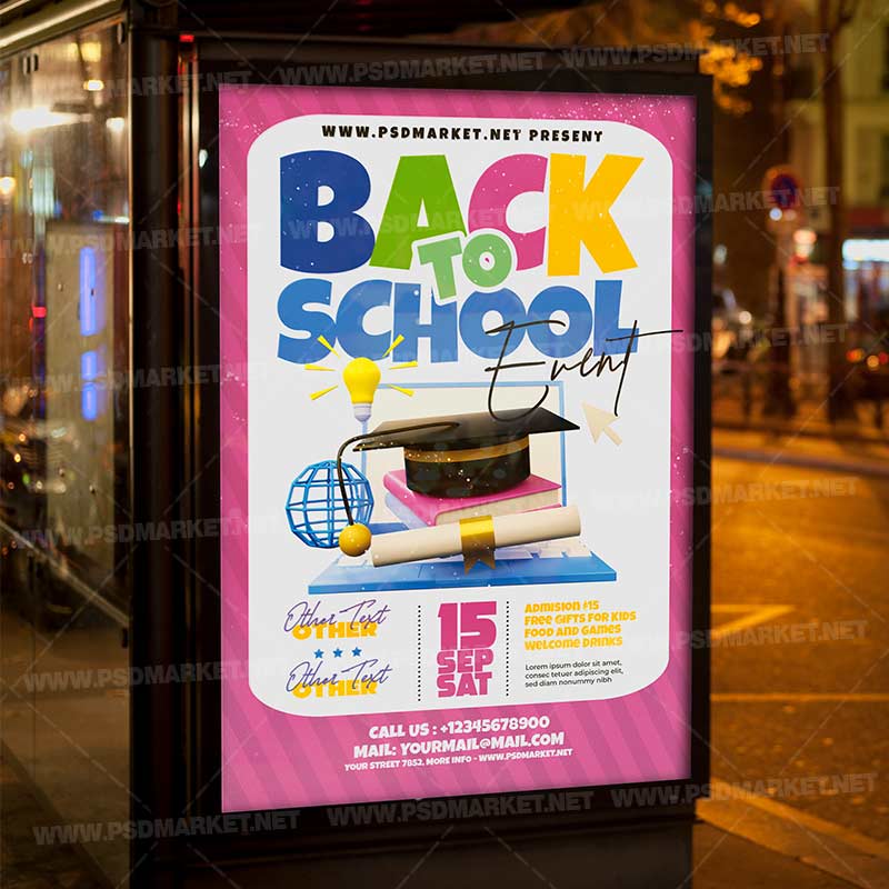 Back to School Event Template Flyer PSD for Adobe Photoshop