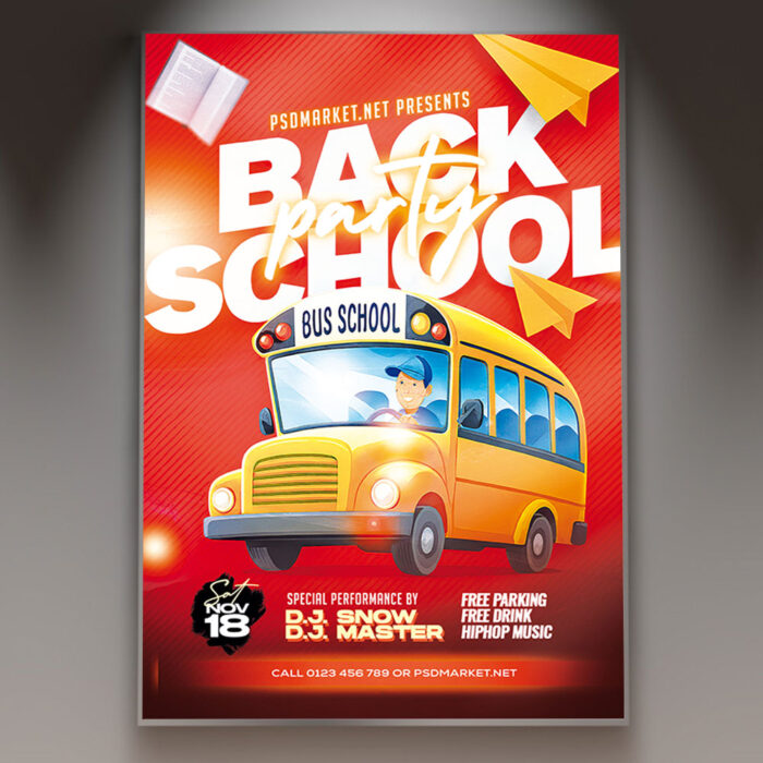 Back-to-School Flyer PSD TemplateGet ready to hit the books and the dance floor with our vibrant **Back-to-School Flyer PSD Template**! This energetic and festive design is perfect for promoting back-to-school parties, school-sponsored events, or any celebration marking the start of a new academic year. If you’re looking to create an irresistible invitation that screams “school’s back in session,” “new year, new memories,” and “the ultimate welcome party,” this flyer template is engineered to draw a massive and enthusiastic crowd of students. Expect to see striking visuals, often incorporating school-themed elements like notebooks, pencils, lockers, vibrant colors, and bold, playful typography that captures the exciting and hopeful spirit of a new school year. This template is all about setting a fun and celebratory mood, making your “Back-to-School Event” the ultimate destination for an epic gathering! The **Back-to-School Flyer PSD Template** offers a highly adaptable and professional layout, ensuring you can clearly communicate all the essential details of your event while perfectly maintaining its energetic and inviting spirit. You can easily customize the text fields to include the specific date and time of your party, the welcoming venue location (e.g., school gym, local club), any special entry requirements or ticket tiers, and information about featured DJs, live entertainment, special contests, or enticing food and drink specials, all presented in a clear and appealing way. Add an enticing description of what attendees can expect, perhaps highlighting opportunities for reuniting with old friends, making new ones, or simply dancing the night away. Detail any exciting features like a designated photo booth, a raffle for school supplies, or special discounts for students with their ID. And of course, include clear contact information or prominent social media handles for further engagement and ticket sales. Many templates also provide exciting options to incorporate additional dynamic graphics like subtle light streaks, abstract patterns, or fun, textured backgrounds, or to adjust the impactful color palette (often bright, contrasting colors against deep blues and whites) to perfectly match your brand’s aesthetic or the event’s specific school theme. This lets you create a truly unique and memorable promotional piece that looks as vibrant and exciting as your event feels. Engineered for maximum reach, the **Back-to-School Flyer PSD Template** is designed to be both print-ready for stunning physical distribution and seamlessly optimized for digital sharing. This ensures your exciting invitation reaches a wide and enthusiastic audience. Create eye-catching physical flyers to distribute at schools, universities, student centers, or popular youth hangouts. Effortlessly share the flyer digitally through various social media channels with engaging captions that highlight the night’s energy, email announcements that build anticipation, and online event listings that attract students, parents, and anyone looking to celebrate the start of the new academic year. This dual functionality helps to maximize visibility and create significant buzz around your Back-to-School Event. By utilizing this distinctive and attention-grabbing flyer template, you’re not just announcing a party; you’re creating an invitation that broadcasts pure joyous fun and promises an experience filled with great music, dancing, and unforgettable memories, making your “Back-to-School Event” the ultimate destination for an epic gathering. Grab this template today and prepare to kick off the school year in style! — Features of the Back-to-School Flyer PSD Template