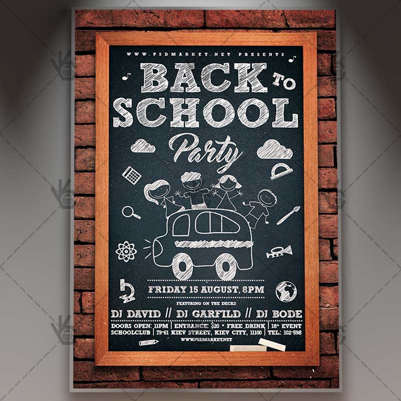 Back to School Party Kids is a simply modern flyer design by PSDmarket Team to be used with Photoshop CS3 and higher. Save your time and use it for business or for your clients! This can be use for Back to School Party, Back to School Night, Back 2 School, VIP School, School Party, School Night and others.