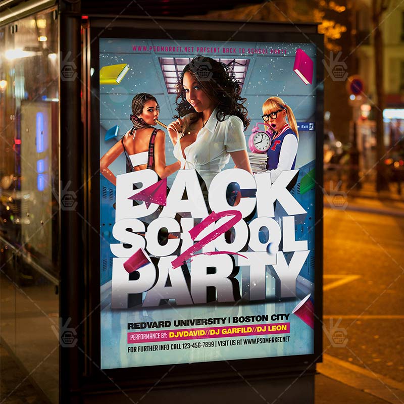 Back to School Party is a simply modern flyer design by PSDmarket Team to be used with Photoshop CS3 and higher. Save your time and use it for business or for your clients! This can be use for Back to School Party, Back to School Night, Back 2 School, VIP School, School Party, School Night and others.