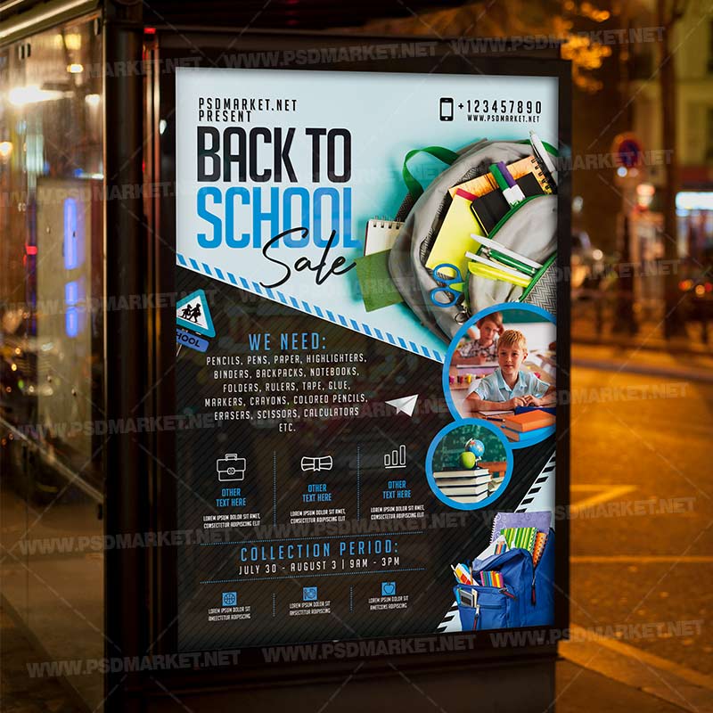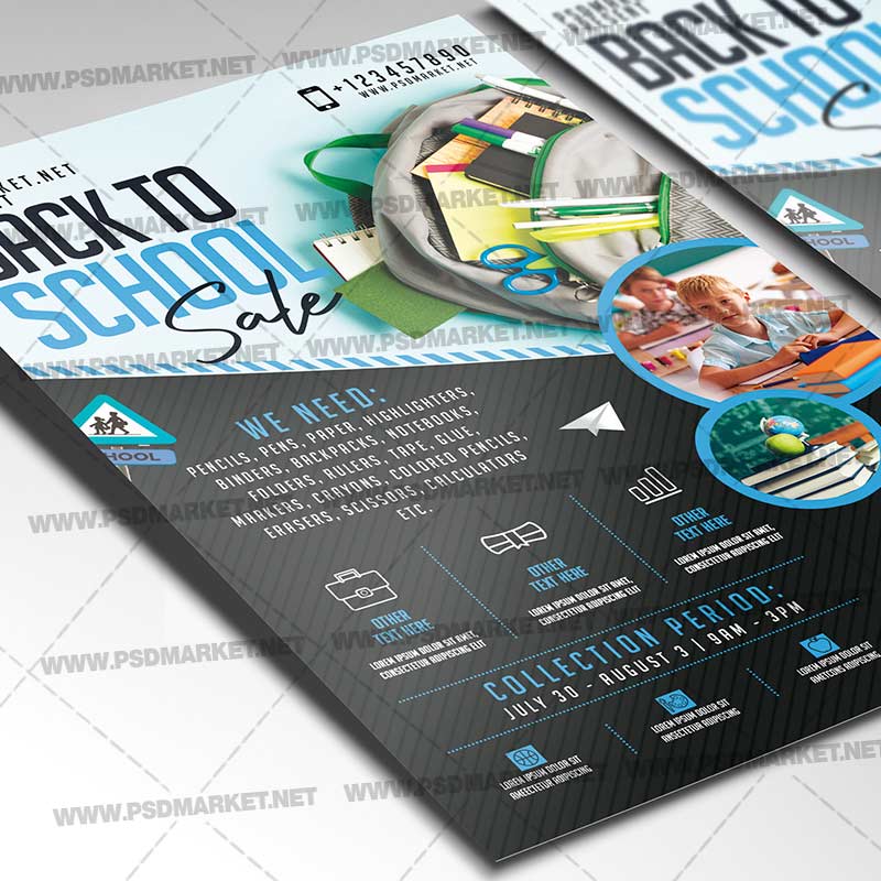 Back to School Sale Template Flyer is a simply modern flyer design by PSDmarket Team to be used with Photoshop CS3 and higher. Save your time and use it for business or for your clients! This can be use for Back to School Sale, Back to School Event, Back to School, Back to School Sale, Back 2 School Party, Back To School Giveaway, Back 2 School Affair, Back 2 School Supply Drive and others.