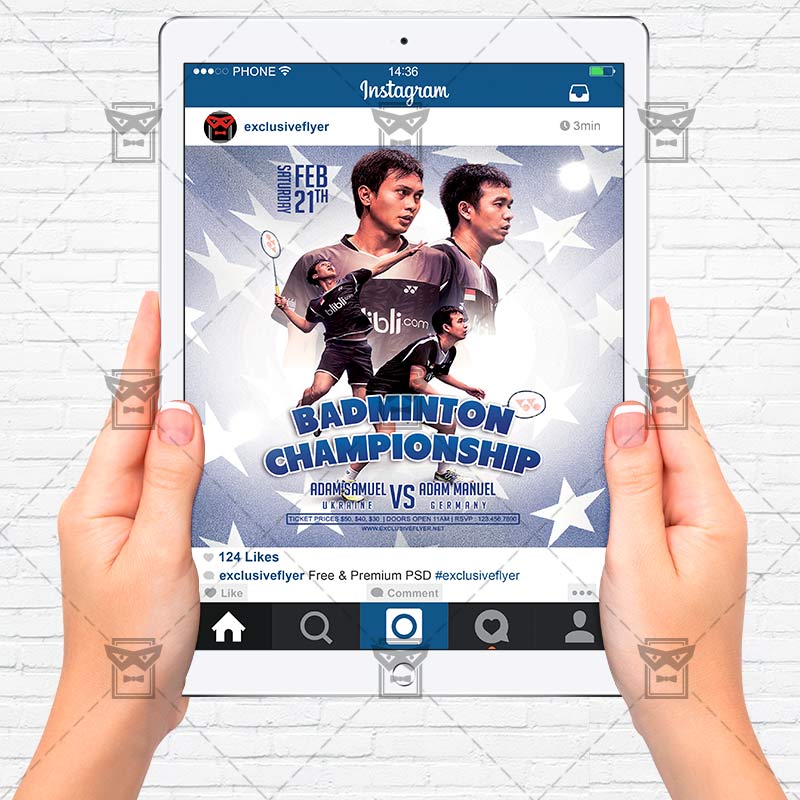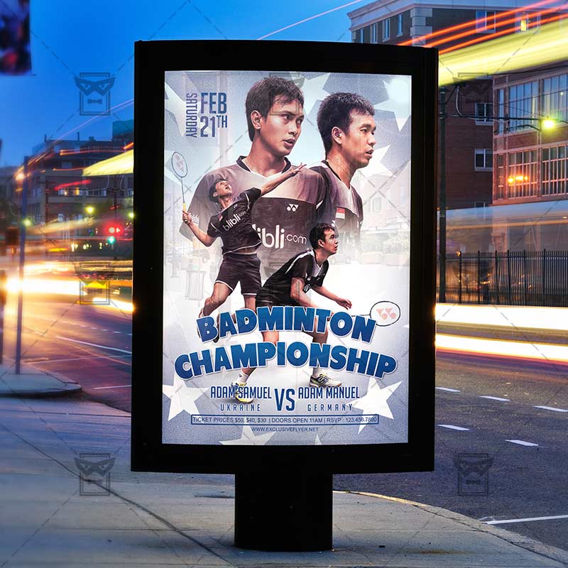 The Badminton Championshipis the exclusive Photoshop PSD flyer template designed by ExclusiveFlyer to promote your Badminton Championship. This is a modern, stylish flyer and just be used for a Badminton Lessons, Badminton Tournament etc. Dear customers! – you can also: Customize any flyers or Hire Us to create any unique product. Also, you can get unlimited access to all our templates. You can buy 1 month membership, 3 or 6 months membership or even 1 year membership plan and login on site, choose a design, click the button DOWNLOAD TEMPLATE and it’s yours. No hassle, no checkout! When you paid the template, you can find it in your personal account and of course you’ve got a message to your e-mail (maybe in spam) with link to download. Also, you can find all templates, which you buy, in your personal account! All of our flyers have a very good quality (300DPI). And it means that you just need to download one of them and make the necessary modifications such as replace the elements or choose the colors and start to invite your guests! You can order from us design of Banner Ad, Bi-Fold Brochure, Tri-Fold Brochure, Business Card, Logo, One-Sided Flyer, Two-sided Flyer or Postcard. All you need is to checkout and write us all information on our e-mail or skype. (order now). There are a lot of free flyer templates, free business card templates on our site! Also there are a lot of categories of flyers such as club flyers, seasonal flyers, sport flyers and also business flyers. You have a great choise on our site, so good luck! Don’t forget to follow our Facebook community, our page on Twitter, on Pinterest and on Tumblr and leave comments, cause we work for you! PSD is set up in 1275×1875 dimension (4” x 6” with 0,25” bleed). The PSD file is very well organised, with color coded groups and layers named appropriately. Remember, all stock images of models and other people used only for demonstration all charms of the flyer and don’t included in the download!