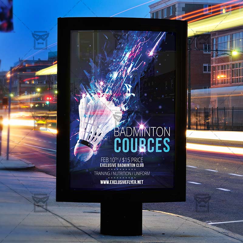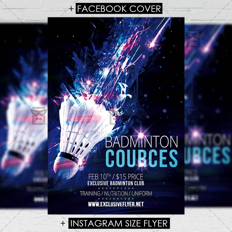 The Badminton Cources is the exclusive Photoshop PSD flyer template designed by ExclusiveFlyer to promote your Badminton Cources. This is a modern, stylish flyer and just be used for a Badminton Lessons, Badminton Championship etc. Dear customers! – you can also: Customize any flyers or Hire Us to create any unique product. Also, you can get unlimited access to all our templates. You can buy 1 month membership, 3 or 6 months membership or even 1 year membership plan and login on site, choose a design, click the button DOWNLOAD TEMPLATE and it’s yours. No hassle, no checkout! When you paid the template, you can find it in your personal account and of course you’ve got a message to your e-mail (maybe in spam) with link to download. Also, you can find all templates, which you buy, in your personal account! All of our flyers have a very good quality (300DPI). And it means that you just need to download one of them and make the necessary modifications such as replace the elements or choose the colors and start to invite your guests! You can order from us design of Banner Ad, Bi-Fold Brochure, Tri-Fold Brochure, Business Card, Logo, One-Sided Flyer, Two-sided Flyer or Postcard. All you need is to checkout and write us all information on our e-mail or skype. (order now). There are a lot of free flyer templates, free business card templates on our site! Also there are a lot of categories of flyers such as club flyers, seasonal flyers, sport flyers and also business flyers. You have a great choise on our site, so good luck! Don’t forget to follow our Facebook community, our page on Twitter, on Pinterest and on Tumblr and leave comments, cause we work for you! PSD is set up in 1275×1875 dimension (4” x 6” with 0,25” bleed). The PSD file is very well organised, with color coded groups and layers named appropriately. Remember, all stock images of models and other people used only for demonstration all charms of the flyer and don’t included in the download!