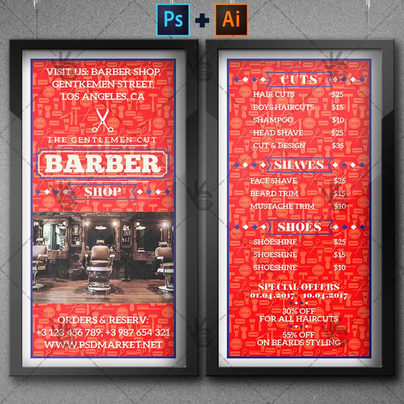 Barber Shop Pricelist – Premium A4 Flyer PSD/AI Template