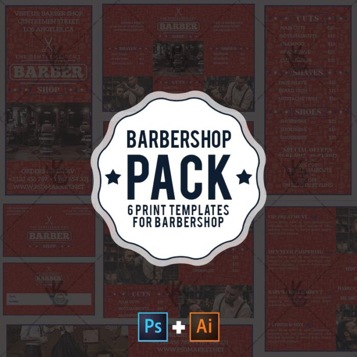 Barber Shop Premium Templates Pack for Photoshop and Illustrator
