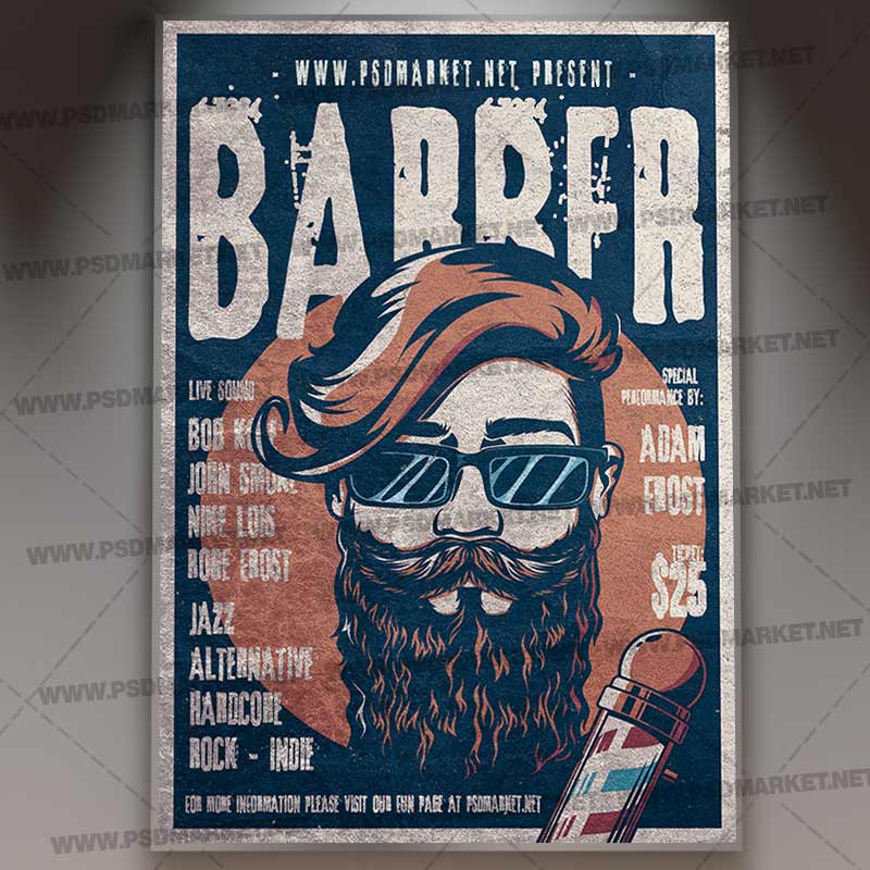 Barber Shop PSD Template Flyer is a simply modern flyer design by PSDmarket Team to be used with Photoshop CS3 and higher. Save your time and use it for business or for your clients! This can be use for Barber Shop Event, Barbershop Event, Barbershop Event Template, Barbershop, Hair Unit Class, Hair Unit, Hair Flyer, Hair Poster, Barber Shop Party, Barber Shop, Barber Shop Day, Barber Shop Night, Barbershop Festival, Hair Salon, Barber Lessons or Barbershop Event and others.
