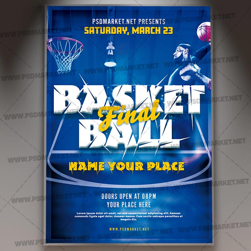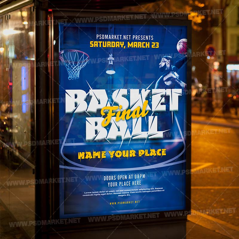 Basketball Final Flyer is a simply modern flyer design by PSDmarket Team to be used with Photoshop CS3 and higher. Save your time and use it for business or for your clients! This can be use for Basketball Final, Basketball Gameб Basketball Madness, Basketball Playoffs, Basketball Collage Game, Basketball Party, Basketball Day or Basketball Match and others.