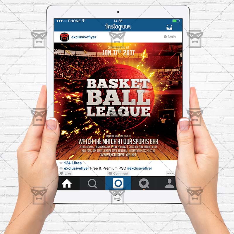 The Basketball League is the exclusive Photoshop PSD flyer template designed by ExclusiveFlyer to promote your Basketball League. This is a modern, stylish flyer and just be used for a Basketball Match, College Basketball Championship etc. Dear customers! – you can also: Customize any flyers or Hire Us to create any unique product. Also, you can get unlimited access to all our templates. You can buy 1 month membership, 3 or 6 months membership or even 1 year membership plan and login on site, choose a design, click the button DOWNLOAD TEMPLATE and it’s yours. No hassle, no checkout! When you paid the template, you can find it in your personal account and of course you’ve got a message to your e-mail (maybe in spam) with link to download. Also, you can find all templates, which you buy, in your personal account! All of our flyers have a very good quality (300DPI). And it means that you just need to download one of them and make the necessary modifications such as replace the elements or choose the colors and start to invite your guests! You can order from us design of Banner Ad, Bi-Fold Brochure, Tri-Fold Brochure, Business Card, Logo, One-Sided Flyer, Two-sided Flyer or Postcard. All you need is to checkout and write us all information on our e-mail or skype. (order now). There are a lot of free flyer templates, free business card templates on our site! Also there are a lot of categories of flyers such as club flyers, seasonal flyers, sport flyers and also business flyers. You have a great choise on our site, so good luck! Don’t forget to follow our Facebook community, our page on Twitter, on Pinterest and on Tumblr and leave comments, cause we work for you! PSD is set up in 1275×1875 dimension (4” x 6” with 0,25” bleed). The PSD file is very well organised, with color coded groups and layers named appropriately. Remember, all stock images of models and other people used only for demonstration all charms of the flyer and don’t included in the download!
