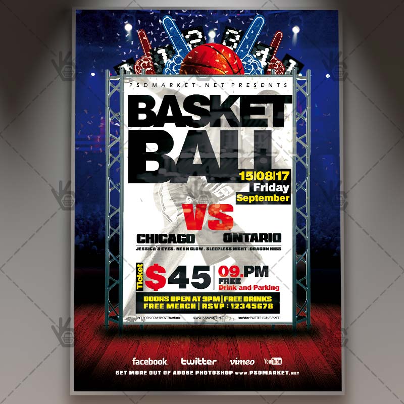 Basketball is a simply modern flyer design by PSDmarket Team to be used with Photoshop CS3 and higher. Save your time and use it for business or for your clients! This can be use for Basketball Madness, Basketball Playoffs, Basketball Collage Game, Basketball Game, Basketball Day or Basketball Match and others.